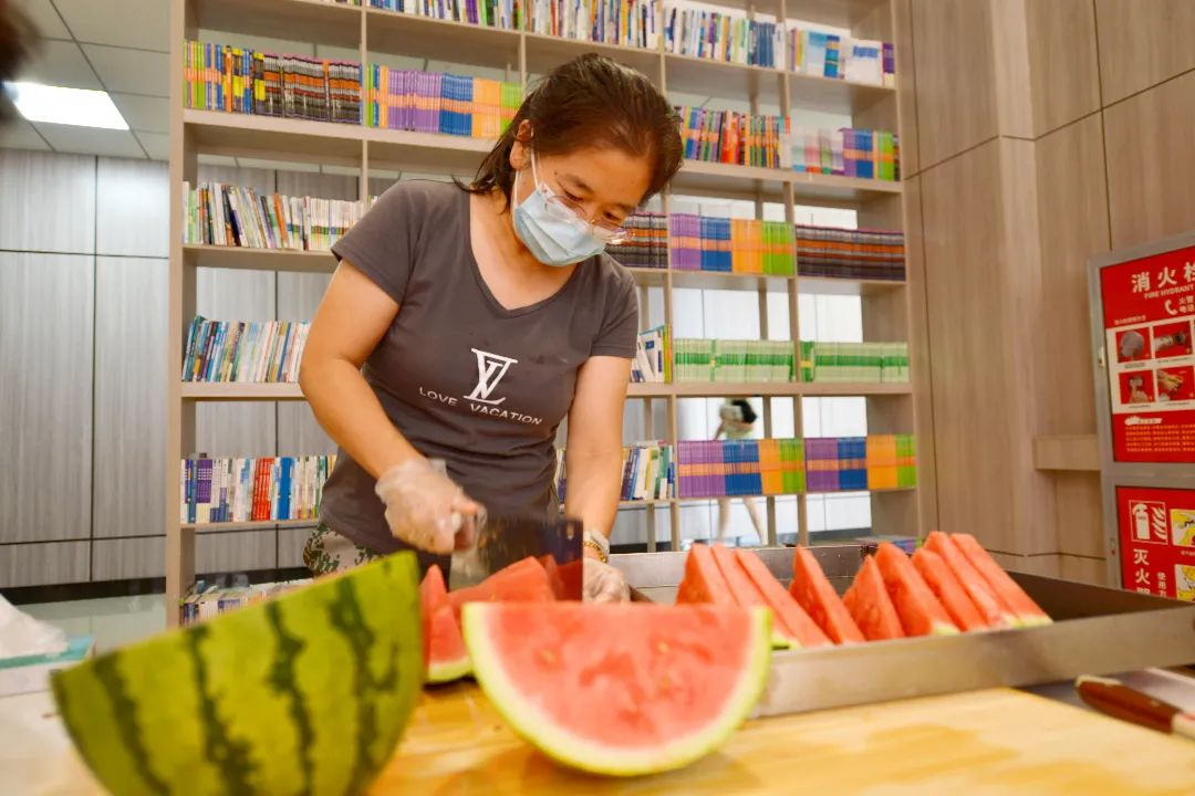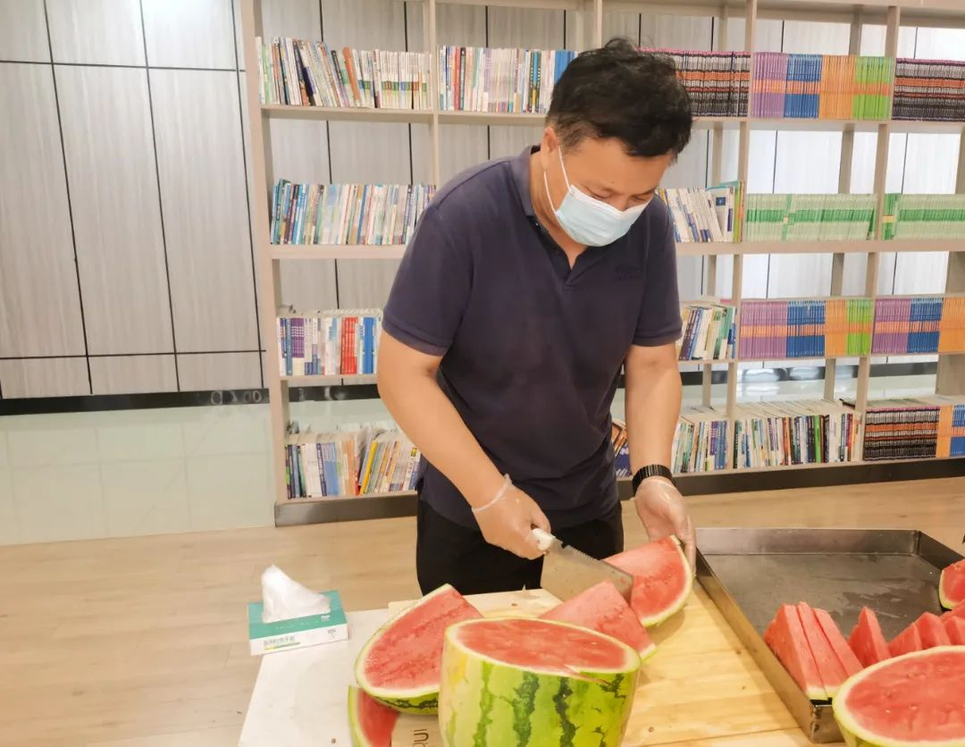 8月2日,永利yl304购买了2000余斤西瓜,为在校的1076名学生送上解暑神器。学院副院长斯琴图,副院长智敏以及全体辅导员将切好的西瓜“上门配送”到学生公寓和教室,将夏日的清凉带到全体计科青年学生的身边。