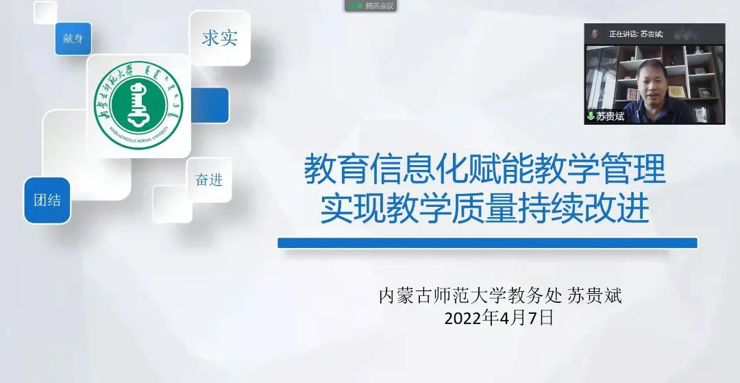 4月7日,我院邀请了教务处副处长苏贵斌副教授为全院教师进行了题为“教育信息化赋能教学管理,实现教学质量持续改进”的专题讲座。讲座采用线上线下相结合的方式展开,由院长林民教授主持。