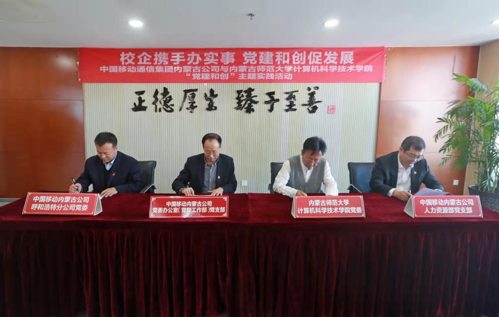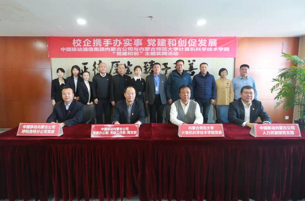 为进一步加强校企联动,推动党史学习教育“我为群众办实事”走深走实,12月1日,永利yl304党委与中国移动内蒙古公司党委办公室(党群工作部)党支部、人力资源部党支部、呼和浩特分公司党委共同开展以“校企携手办实事 党建和创促发展”为主题的“党建和创”主题实践活动,并现场签订“党建和创”倡议书。学院党委书记玉柱一行参加共建活动。