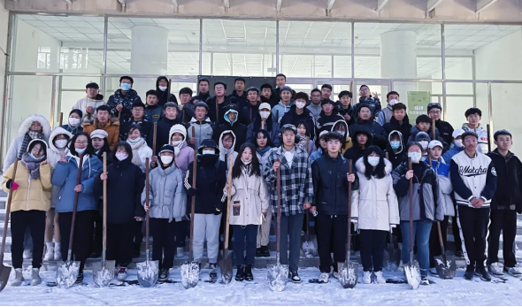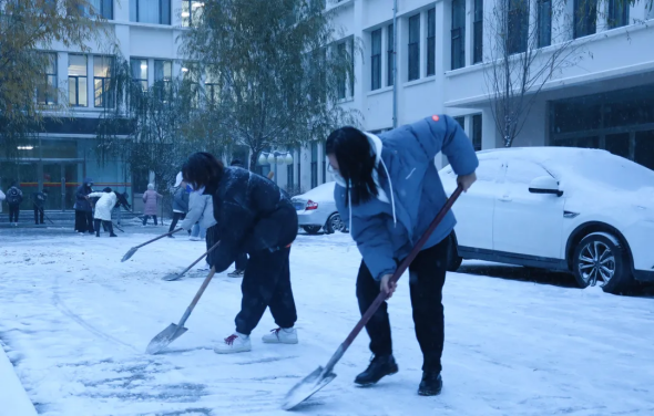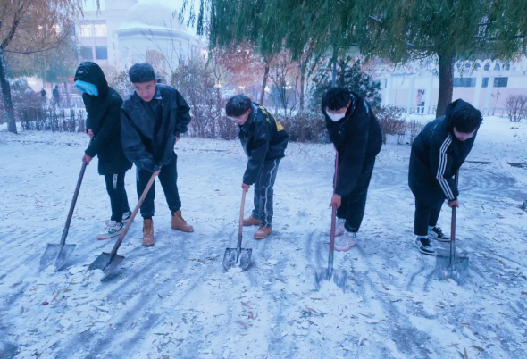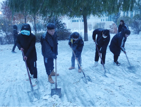 “领跑者计划”学员们不畏严寒,不断前行,他们甩开膀子,挥动手中的工具,个个干劲十足,一派热火朝天的景象:有的弯腰奋力铲雪,有的俯身清理雪堆,很快就将部分路面清扫干净。同学们用实际行动,让严寒的冬日变得格外温暖。