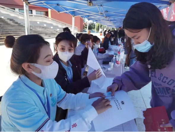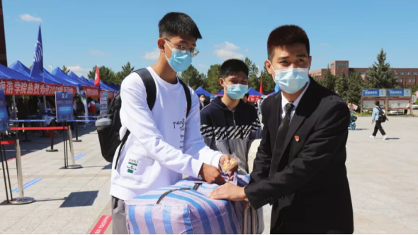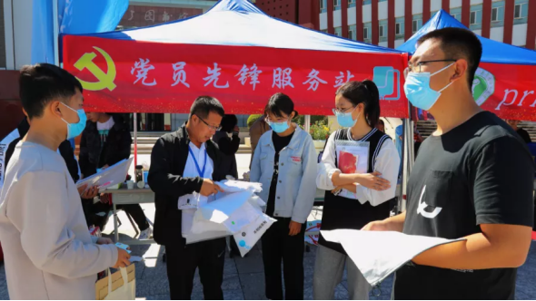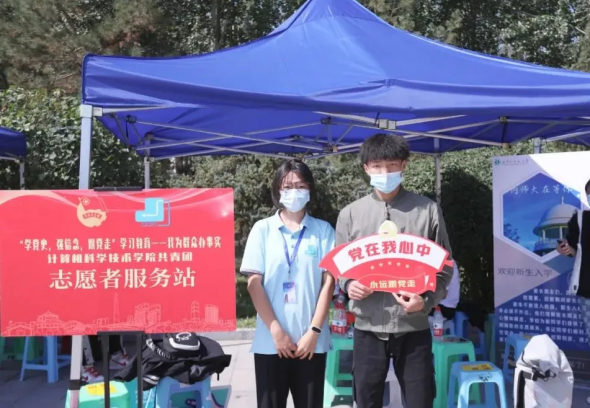 我院设立青年志愿者服务站,帮助新生答疑解惑、带领新生办理入学登记。
