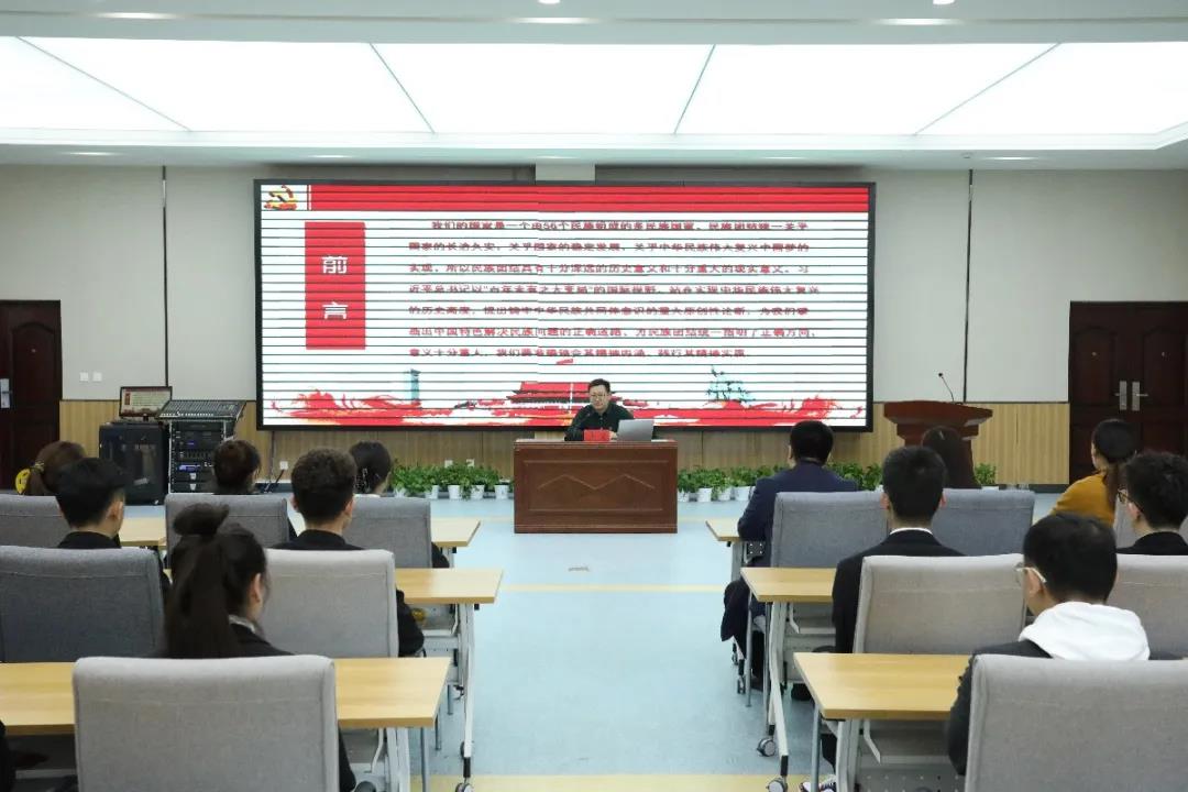3月12日,永利yl304在学生事务中心一楼报告厅举办铸牢中华民族共同体意识专题讲座。学院党委副书记、副院长沙金以“铸牢中华民族共同体意识共圆伟大中国梦”为主题,给我院全体辅导员、学生干部上了一堂生动的民族工作理论课。