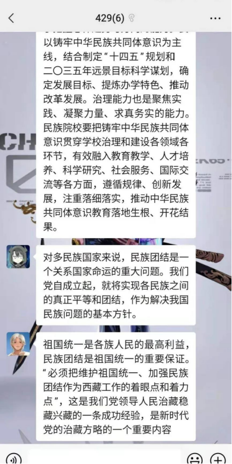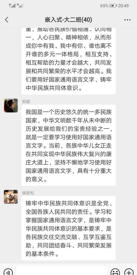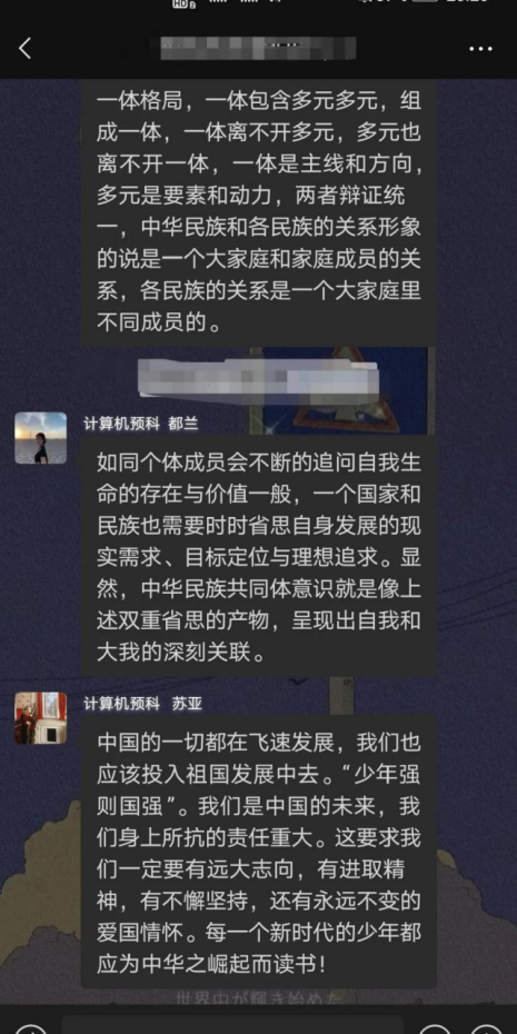 此次课程紧密围绕“铸牢中华民族共同体意识,大力开展爱国主义教育、党史教育、民族团结进步教育和“战疫”专题教育”,不仅有助于广大师生增强铸牢中华民族共同体意识,也有助于增强“四个意识”,坚定“四个自信”,我院师生将以昂扬的斗志铸牢中华民族共同体意识,更好地践行守望相助理念,精心呵护“模范自治区”的崇高荣誉,以实际行动为铸牢中华民族共同体意识奉献青春力量。