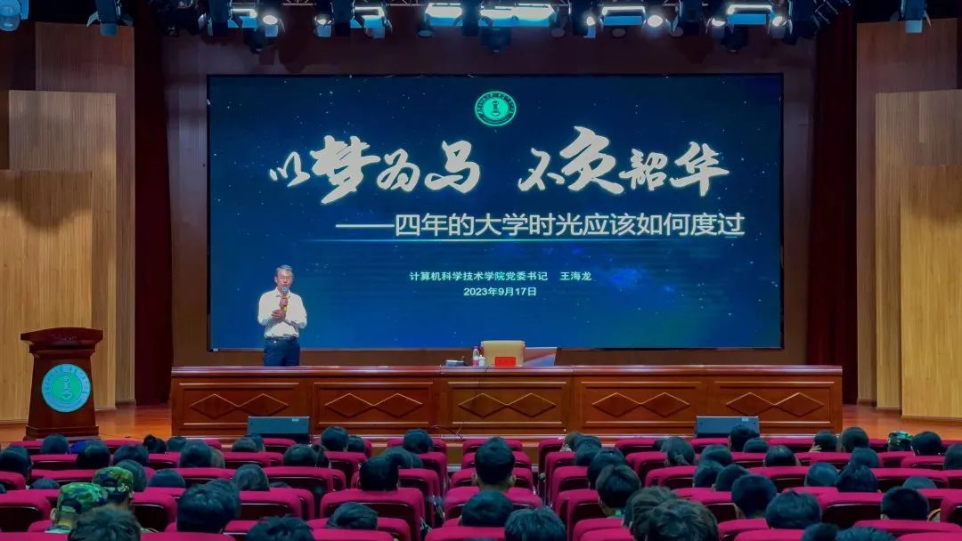 2023年9月17日下午,永利yl304党委书记王海龙以《以梦为马·不负韶华——四年的大学时光应该如何度过》为主题,为我院2023级全体本科生、研究生讲授了一堂提振信心、坚定理想、勇担使命的“开学第一课”。