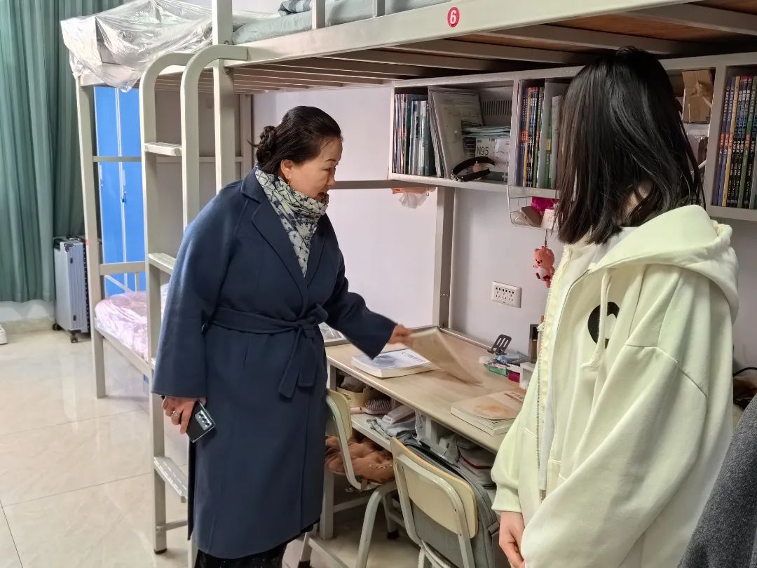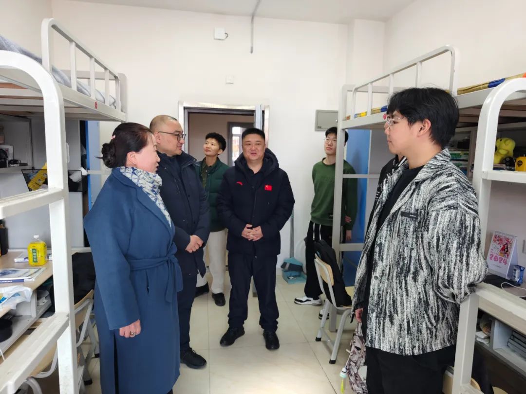 新年伊始,寒假结束,为了解我院同学返校情况,掌握学生思想动态,2024年2月25日,学院党委书记乌日其木格,副院长柳林一行来到学生公寓走访慰问,为同学们送去关心和问候。乌日其木格书记、柳林副院长叮嘱大家及时调整生活状态,规律作息,以饱满的精神面貌迎接新学期的学习生活。同时,老师们细致地了解了同学们新学期的课业安排、学习规划,以及同学们的所求所需,共同解决大家在学习和生活中的问题。