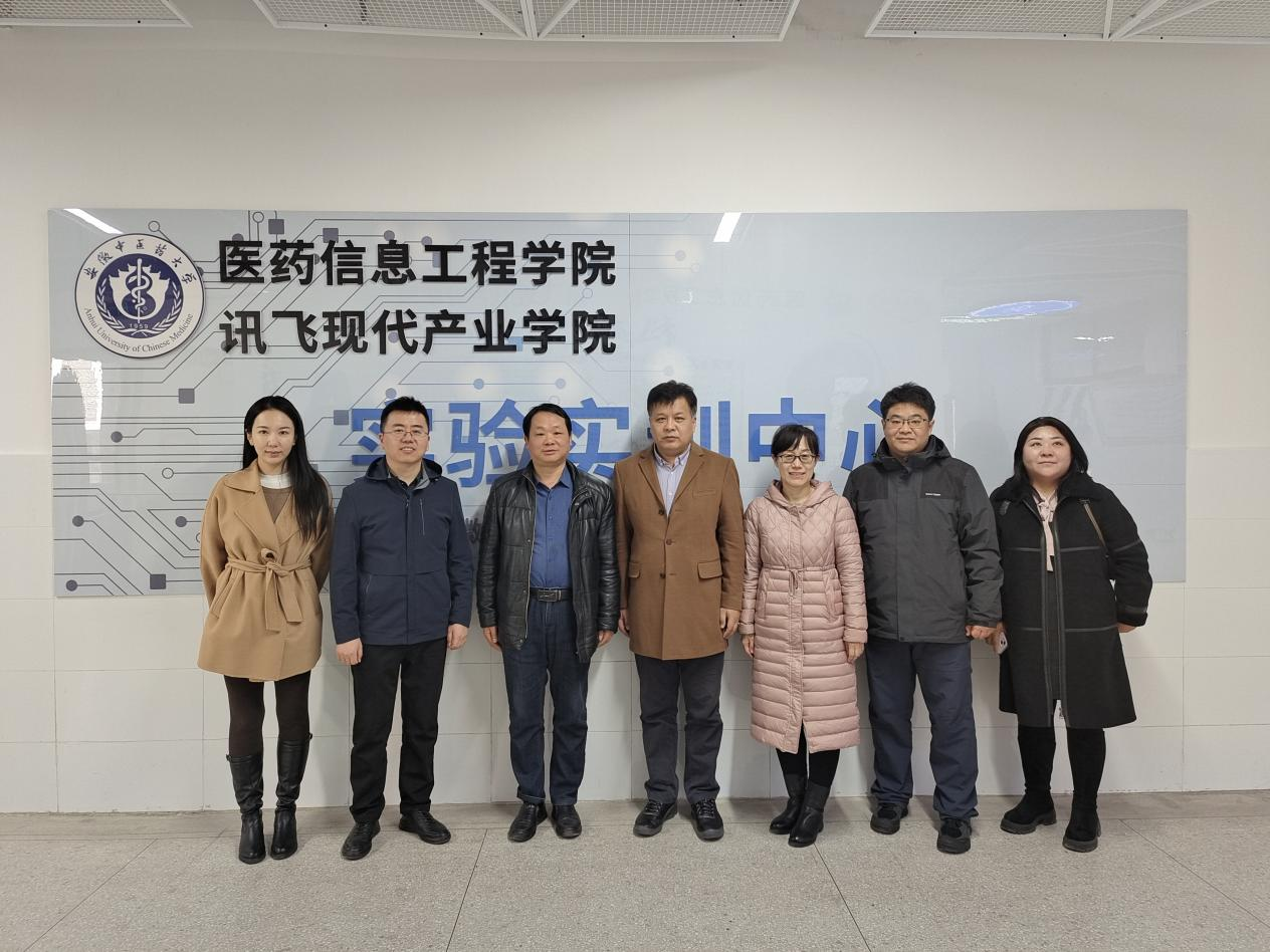 在安徽中医药大学讯飞现代产业学院,副院长阚峻岭详细介绍了产业学院的机制体制、校企共建实践中心、师资培养等方面的情况,并深入分析了“数据科学与大数据技术(讯飞班)”的人才培养方案。双方就开设课程和校企师资配备做了深入交流。之后一行三人随讯飞高教人才培养业务北方区总监王家波、高教人才培养业务市场总监程含含、内蒙古大区客户经理吴丹、副院长阚峻岭和实验教学中心主任杜炜,一同参观了医药信息工程学院讯飞现代产业学院实验实训中心和“AI+中医药体验中心”。