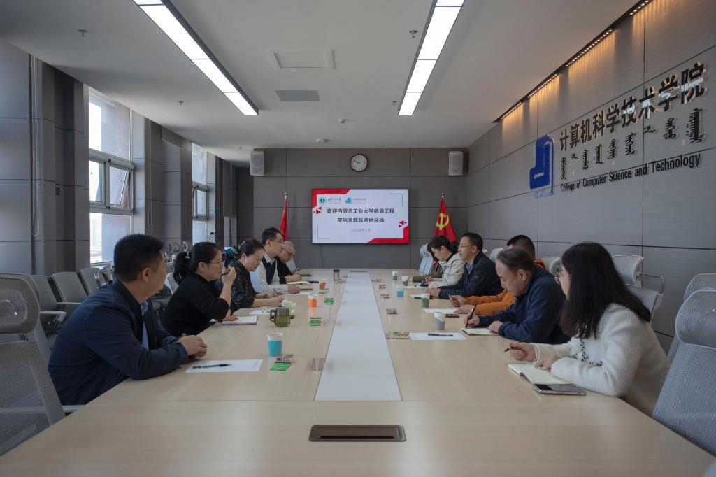 3月26日上午,内蒙古工业大学信息工程学院党委书记刘建国、院长黄平平一行6人到我院调研交流,我院党委书记乌日其木格、院长王海龙热情接待,双方就党建引领高质量发展,教学质量管理体系建设、教学评估与监控机制、教师培训与发展、人才培养方案、校企合作、团学工作等方面开展深入交流。内蒙古工业大学信息工程学院副书记、副院长佟姝婕、副院长张占强、组织员许霞、党委组织部组织科科长吴晓妹陪同调研。