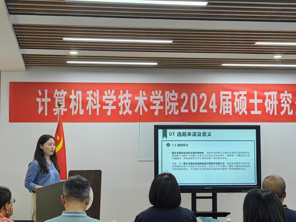 5月23日下午,永利yl3042024届计算机科学与技术、课程与教学论(计算机)硕士研究生学位论文答辩会在赛罕校区信息楼举行。根据学院安排,本次设置了三个答辩小组。内蒙古大学孙涛教授担任第一组答辩主席,永利集团304智敏教授、郭改枝教授、殷雁君教授、王春晖副教授、柳林副教授担任计算机科学与技术第一组答辩委员会成员。