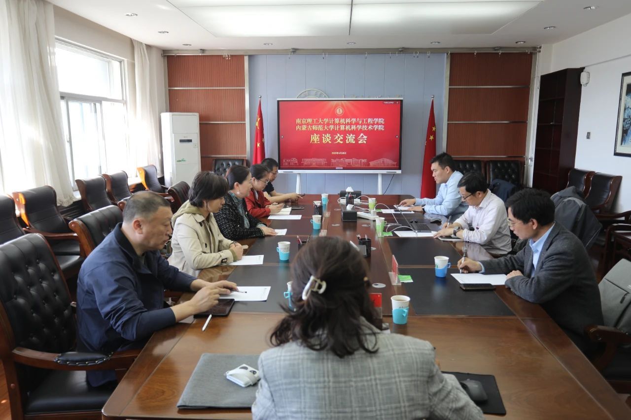 4月28日上午,南京理工大学计算机科学与工程学院党委书记陆建峰、副院长肖亮一行到我院交流座谈。我院党委书记乌日其木格、副院长智敏,系部主任出席会议,座谈会由乌日其木格书记主持。