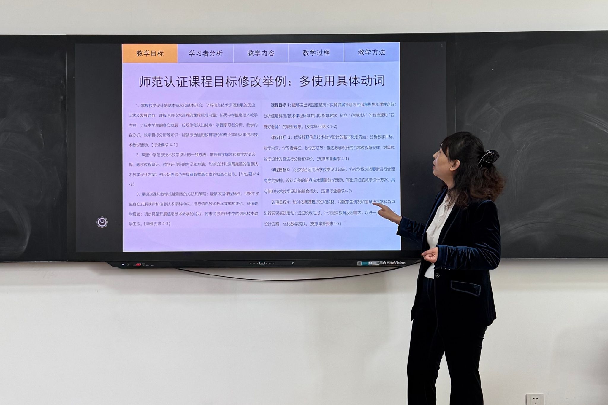 本次活动邀请教师教育实训中心主任王素坤、课程与教学论教师萨茹拉分别进行题为《有效教学设计》和《基于OBE理念的课程建设探讨》的分享。王素坤围绕教学目标分析、学习者分析、教学内容分析、教学过程分析和教学方法分析等方面进行了深入浅出的讲解。萨茹拉从培养方案与课程价值、课程大纲各要素关系、课程教学策略探讨和未来课程建设思考等方面进行分享。两位教师结合计算机学科的特点和前沿发展趋势,通过大量生动的实际案例,详细阐述了如何将理论知识与实践教学紧密结合,激发学生的学习兴趣和创新思维,让在场教师深受启发。