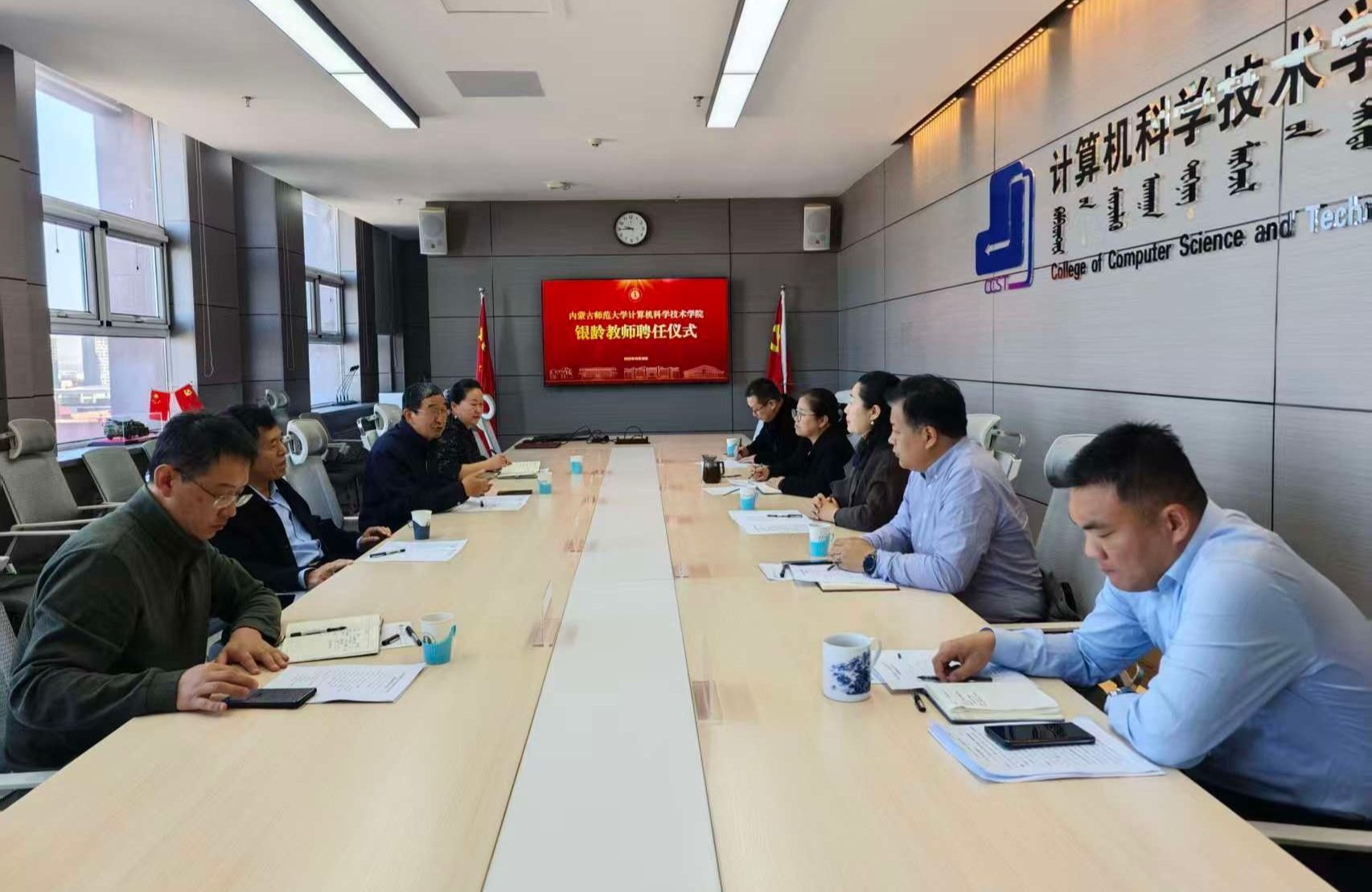10月30日上午,永利yl304在盛乐校区理工楼A座912会议室隆重举行银龄教师聘任仪式,正式聘请陈兵旗、孙瑞志两位资深教授为学院银龄教师。仪式由学院党委书记乌日其木格主持,校人事处副处长张艳英、人事科科长王白古拉及学院党政领导班子共同参加。