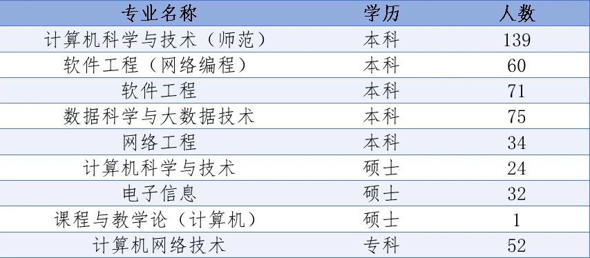如今,我院毕业生已遍布全国信息技术行业与教育领域。他们当中,既有在软件开发、人工智能、数据科学等领域展现扎实专业能力的技术骨干,也有在基础教育一线推动信息技术与教学深度融合的优秀教师,更有众多校友成长为行业领军人才,生动诠释了学院的育人成果。