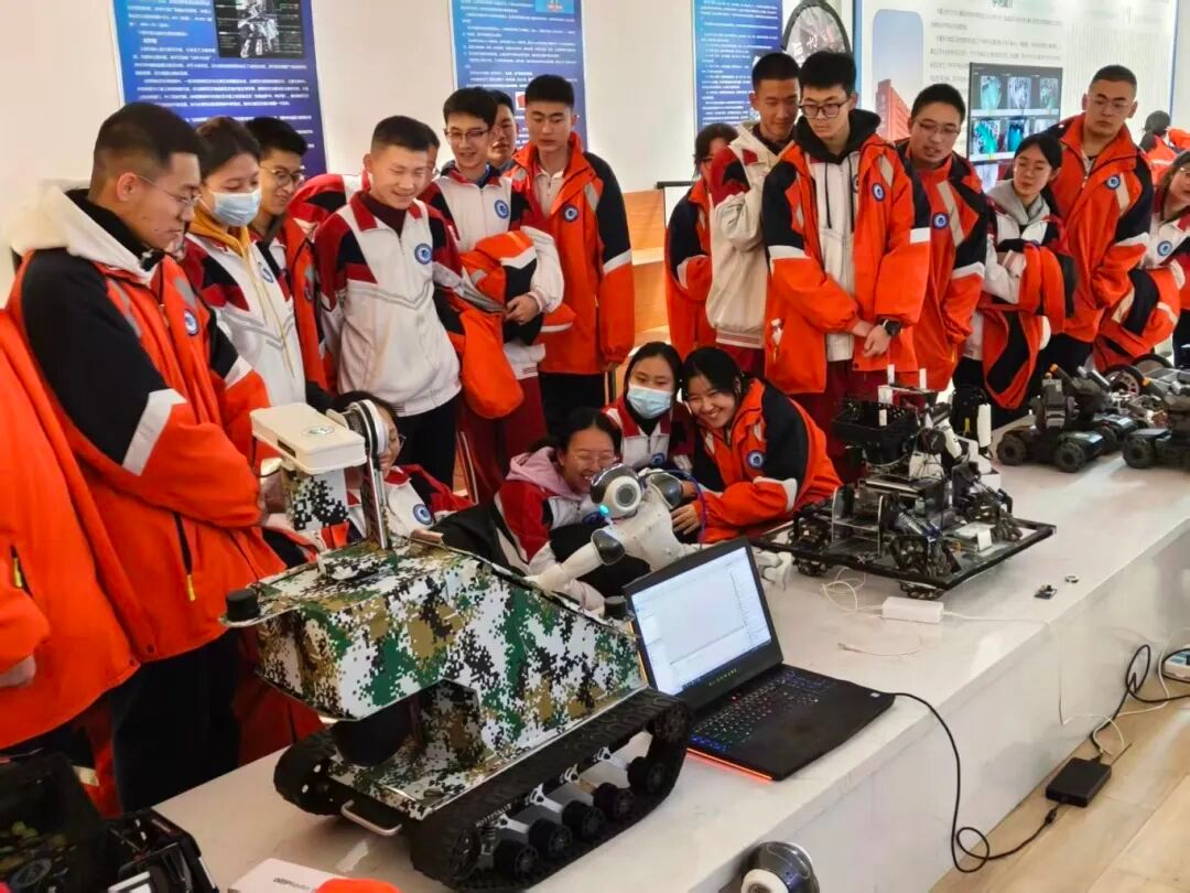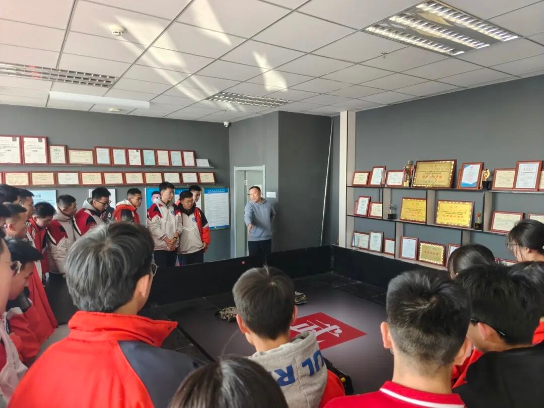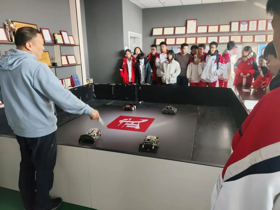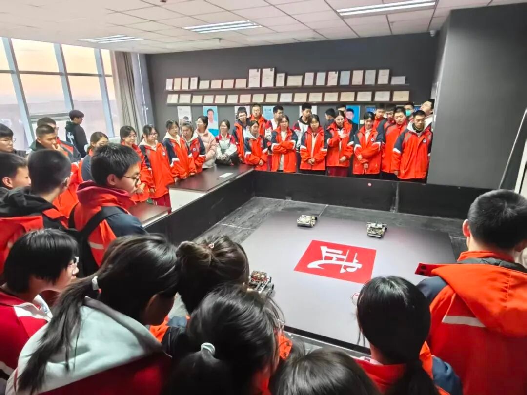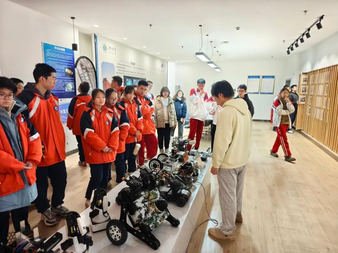 在机器人与人工智能创新中心,师生们近距离考察了我院重点建设的双创孵化平台。中心集中展示了我院在多项国家级机器人赛事中获奖的自主研发成果,包括视觉机器人、轮腿机器人、平衡车、自适应机械臂等智能系统。现场演示了机器人在自主导航、动态抓取等方面的先进功能,研发团队鼓励高中生积极参与全国青少年机器人竞赛等相关赛事,在实践中锻炼创新能力。