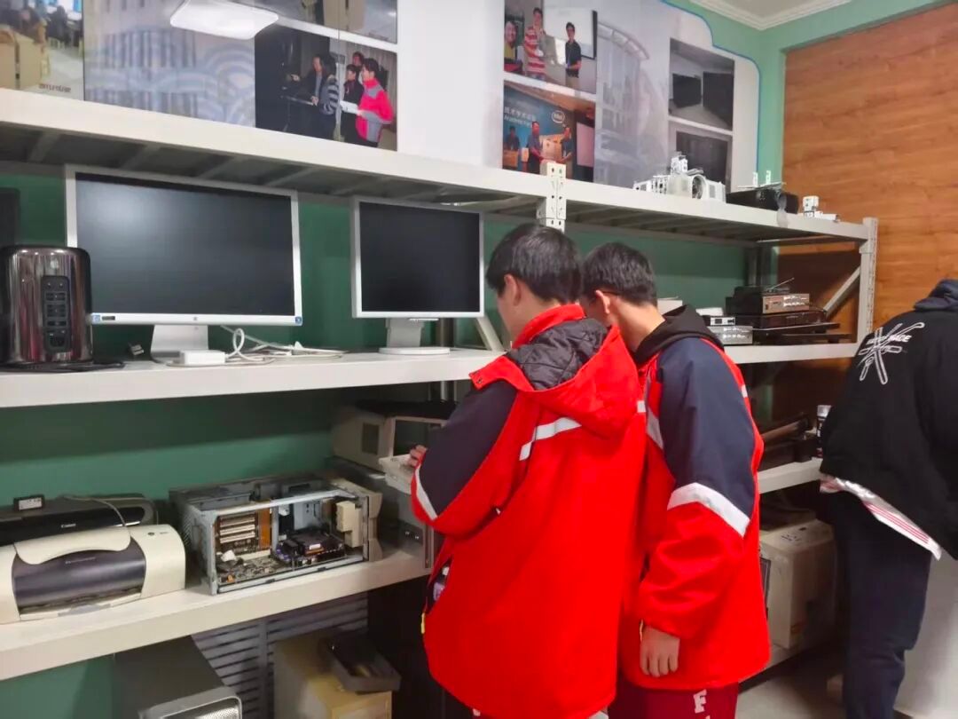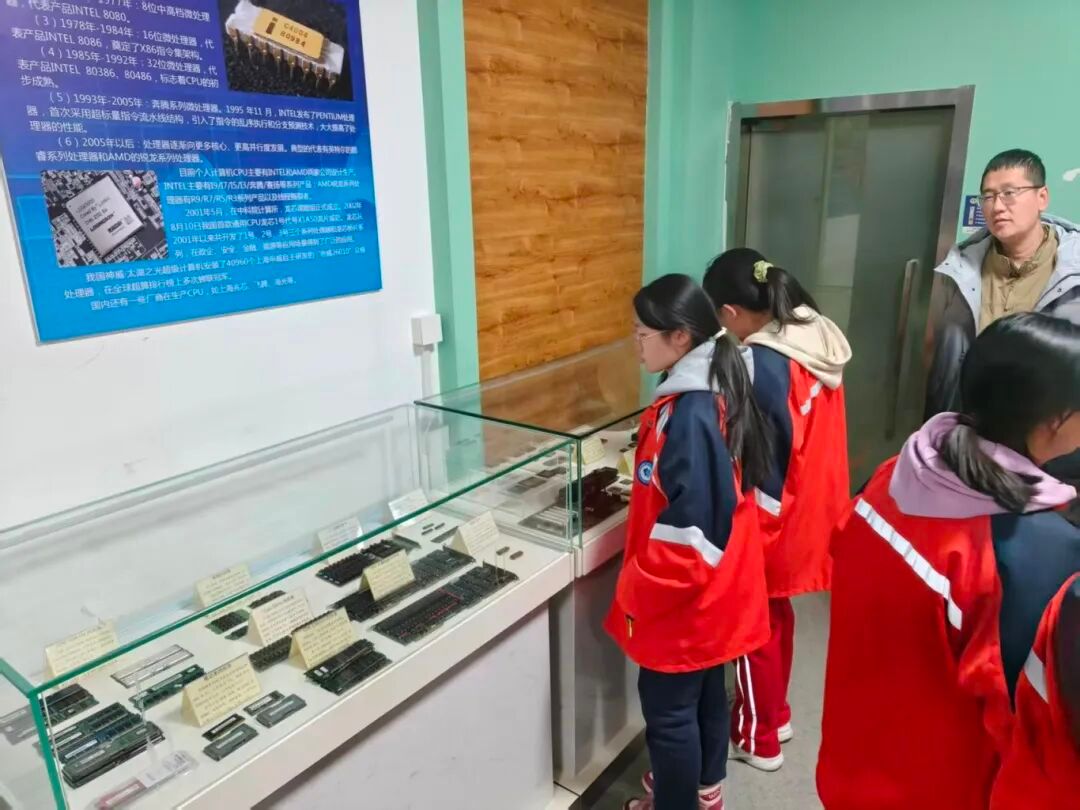 活动中,同学们分别参观了我院信息技术史馆与机器人与人工智能创新中心。信息技术史馆内陈列涵盖网络通信设备、超级微型机、高性能计算集群、服务器、老式个人计算机、笔记本和工作站、计算机主要配件,全面展现了信息技术从萌芽到蓬勃发展的历程。实验中心教师生动详实的解说,使同学们对信息技术波澜壮阔的发展史有了直观而深刻的认识,在亲身感受各阶段实物展品的过程中,进一步激发了创新热情与探索欲望。