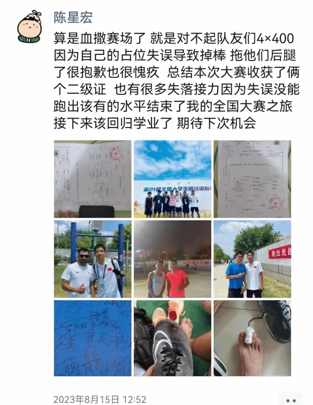 在他无数次努力和辅导员老师、体育教练的不断鼓励下