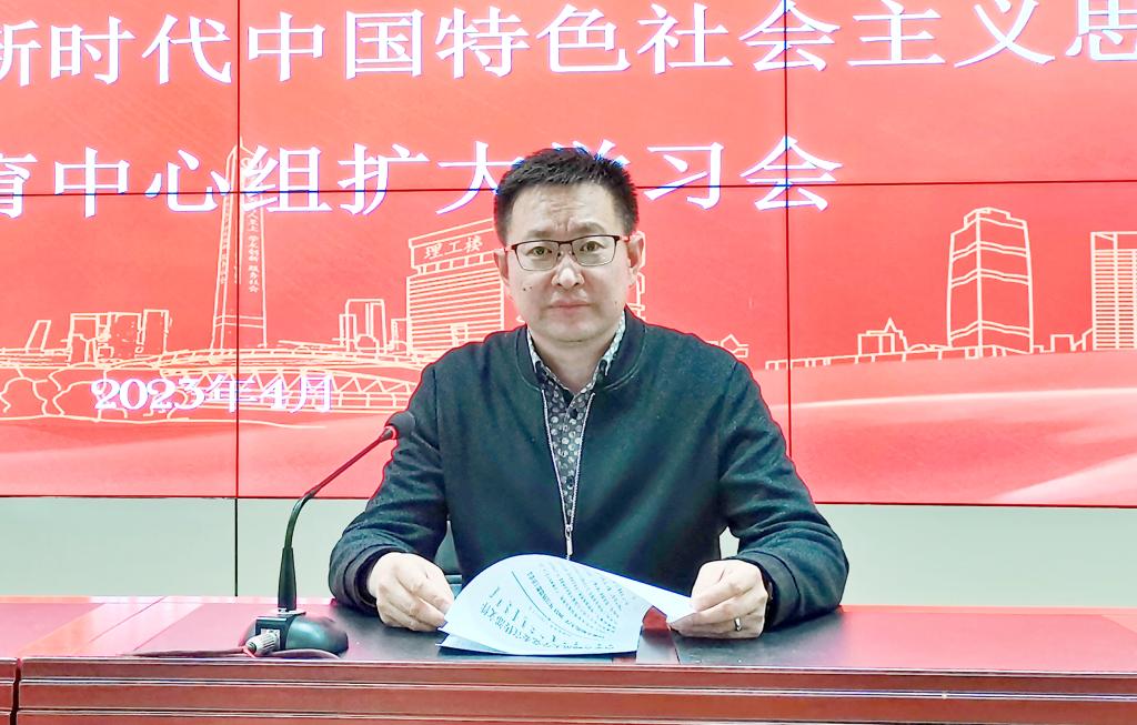 4月27日下午,永利yl304党委学习贯彻习近平新时代中国特色社会主义思想主题教育党委理论学习中心组扩大学习会在赛罕校区信息楼会议室举行。学院党委书记、院主题教育领导小组组长玉柱主持会议并全程领学,学院全体党委中心组成员、党支部书记、系部中心主任参加会议。