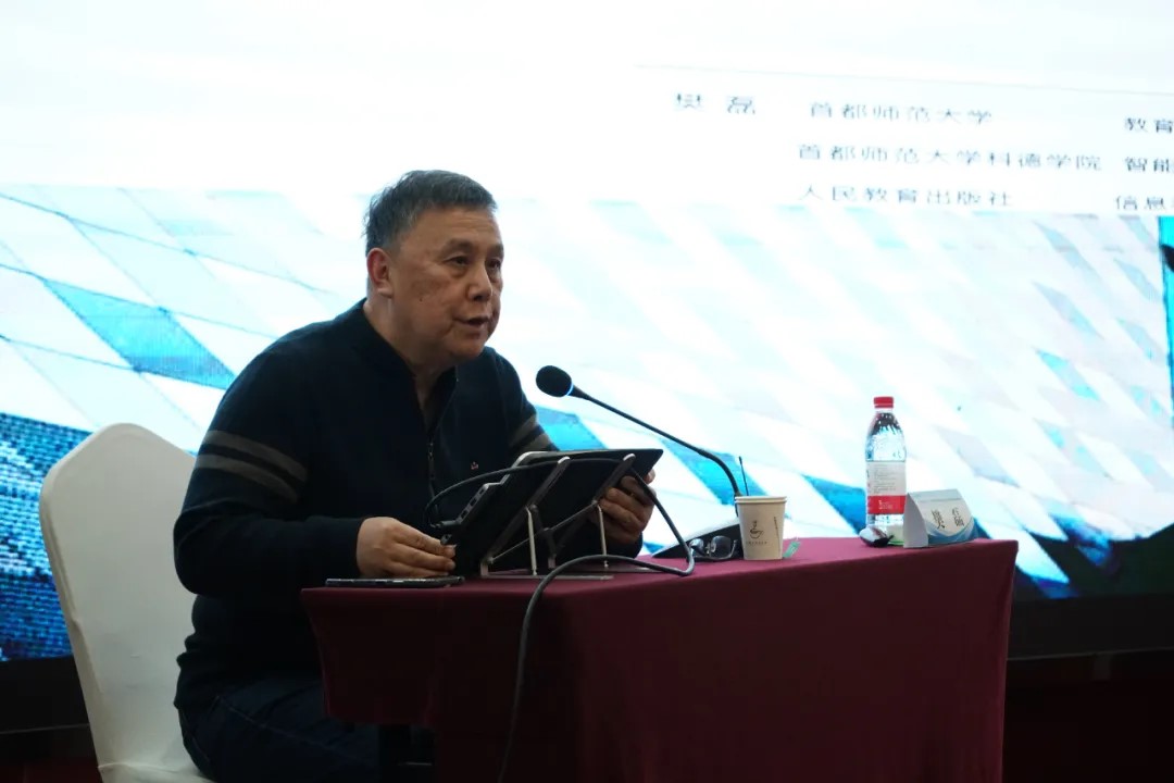 首都师范大学教育学院教授,人民教育出版社特聘专家樊磊以《人工智能-信息科技、通识与数字素养》为主题作报告。樊磊教授担任教育部普通高中课程标准(信息技术)专家组核心成员;教育部义务教育课程标准(信息科技)专家组核心成员;教育部高等职业院校信息技术课程标准专家组成员;教育部基础教育教学指导委员会技术课程分委会成员。人民教育出版社-中国地图出版集团高中新课标信息技术教材(2019版)总主编。